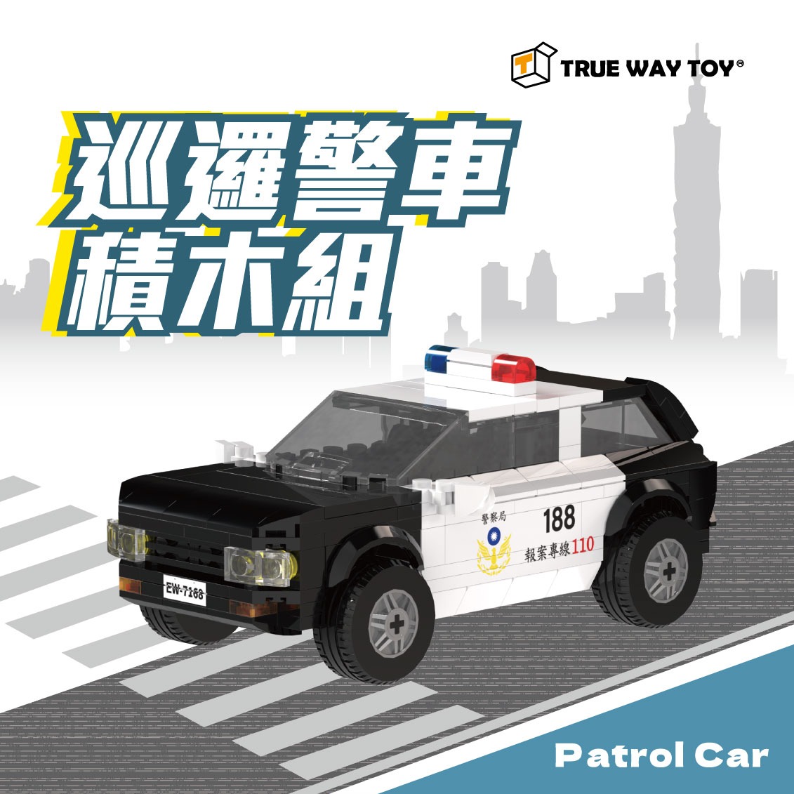 【TrueWayToy】台灣城市交通積木系列 ╴警車積木組|城市日常車款