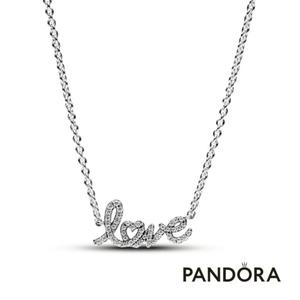 [客製化卡片]手寫的祝福💖【Pandora官方直營】璀璨手寫體「Love」字樣短項鏈-925銀