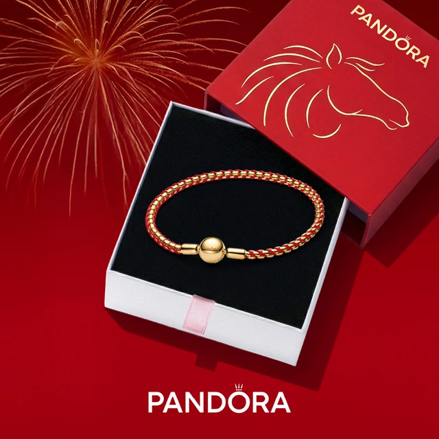 福氣紅包袋🧧【Pandora官方直營】Moments 紅色皮革手鏈-2026新年限定包裝