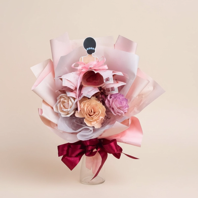 【鹿可Look】母親節限定 最愛媽咪🌺(單層鈔票花)|花禮 香皂花 永生花 乾燥花 玫瑰熊 有錢花 鈔票花 聖誕 求婚 情人節 母親節禮物 新年花禮 春節花禮 過年送禮 畢業花束