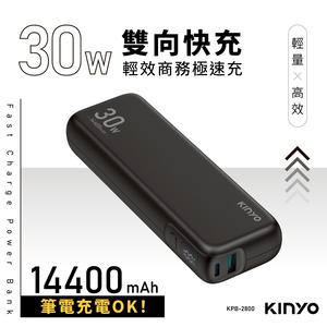 通勤差旅快快充🔋【KINYO】PD 30W輕效商務極速充 (KPB-2800) 行動電源 高效輕巧 上班族首選 聖誕禮物 交換禮物