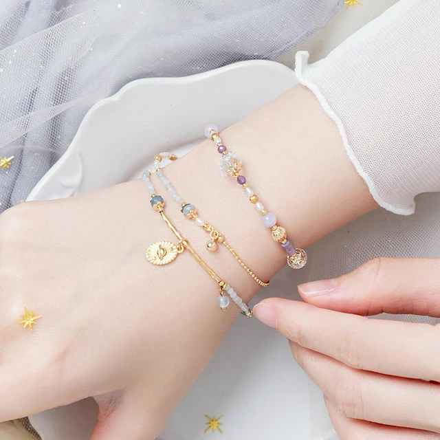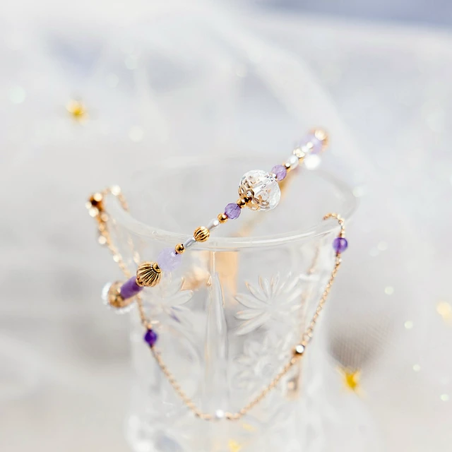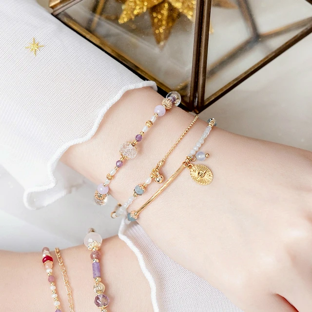 【Ficelle輕珠寶】南島花開的記憶| 紫水晶 草莓晶 白水晶 蛋白石 淡水珍珠 黃銅鍍18K金 彈性繩手鍊