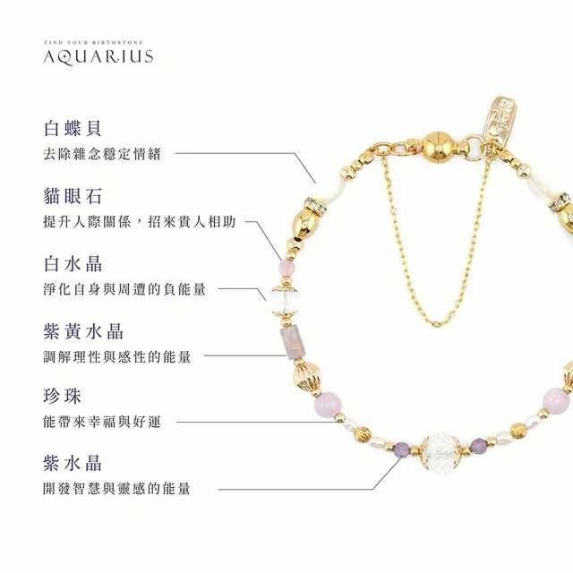 【Ficelle輕珠寶】守護石 • 一月誕生石 | 石榴石 白水晶 橙石榴石 淡水珍珠 粉晶 白蝶貝 星座飾品 誕生石飾品 黃銅鍍18K金 磁扣手鍊