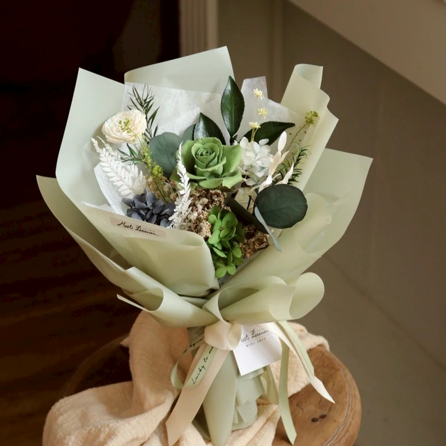 【遇見恆久】綠影花夢永生花花束 含盒