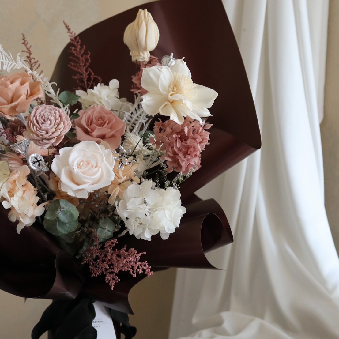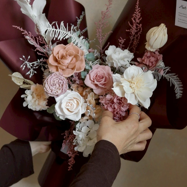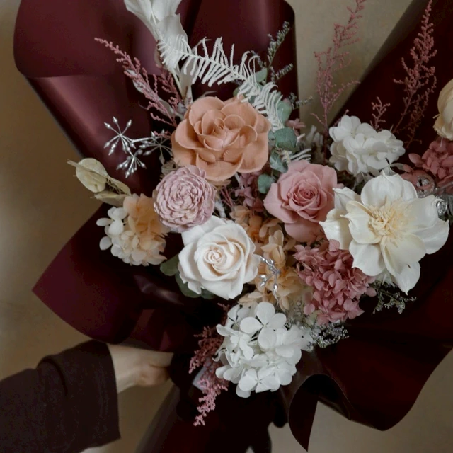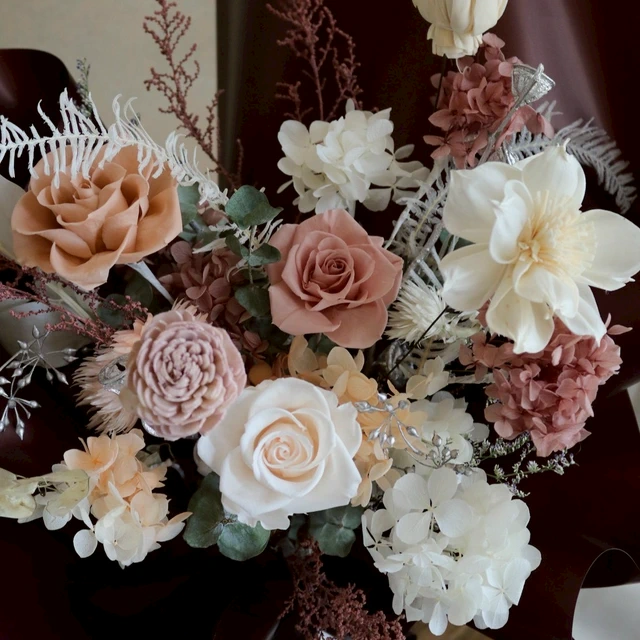 【遇見恆久】霧感藕粉永生玫瑰捧花 新娘捧花