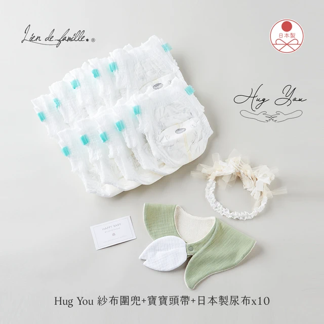 【Lien de famille】嬰兒尿布蛋糕禮品組(多功能圍兜)|日本製・職人手作・質感送禮|多功能拍嗝兩用圍兜+尿布|新生禮 彌月禮 滿月禮 收涎禮 週歲禮 生日禮|送禮首選 快速出貨 禮盒形式