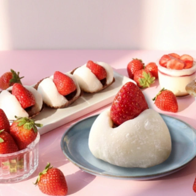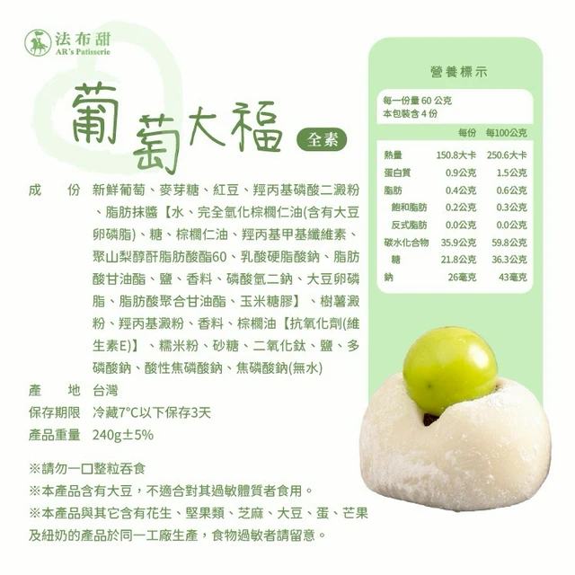 3日內出貨【法布甜】麝香葡萄2入+大湖草莓2入大福 (4入盒裝)|草莓季甜點| 生日 過年 素食