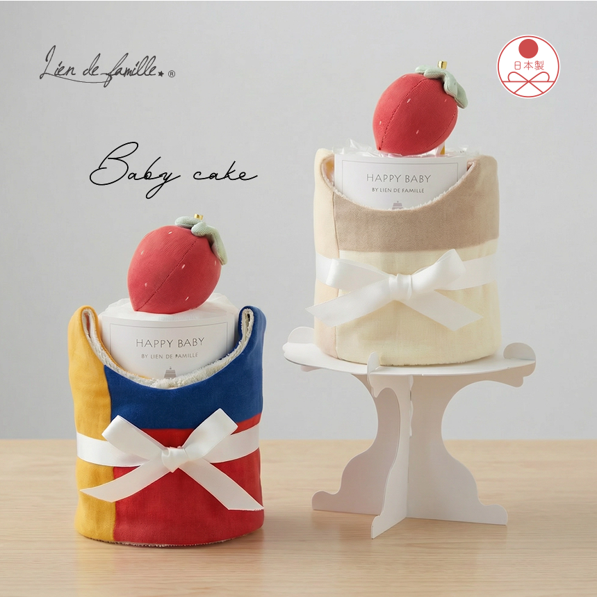 【Lien de famille】嬰兒尿布蛋糕禮品組(多功能圍兜)|日本製・職人手作・質感送禮|多功能拍嗝兩用圍兜+尿布|新生禮 彌月禮 滿月禮 收涎禮 週歲禮 生日禮|送禮首選 快速出貨 禮盒形式