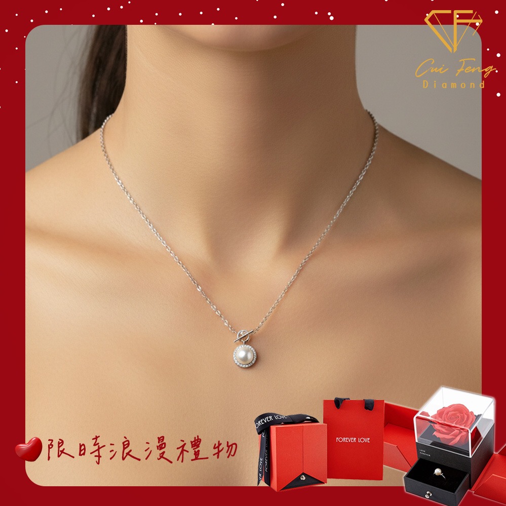 [快速出貨]【CF鑽飾】520限定《💖圓包款 項鍊+耳環》莫桑鑽 1+1套組 情人節 贈玫瑰花禮盒 生日禮物 送禮