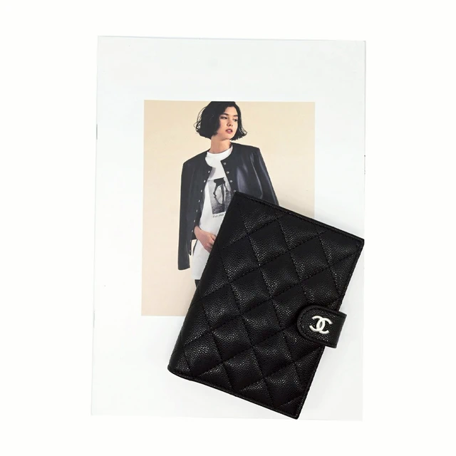 [平輸版] CHANEL 香奈兒 經典雙C牛皮三折中夾(黑金logo)
