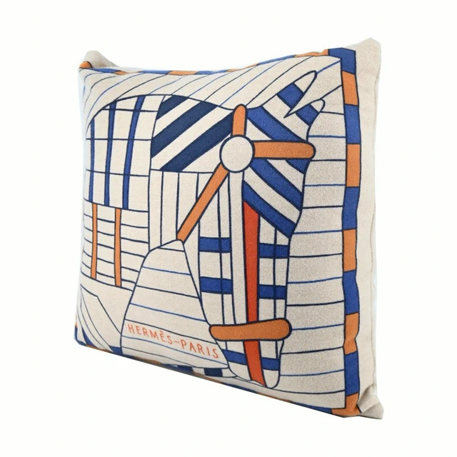 [平輸版] Hermes 愛馬仕 Atelier d'Artiste 美麗諾羊毛雙色抱枕(紅色/英國綠)