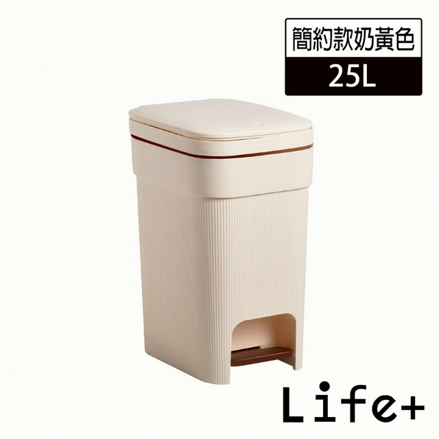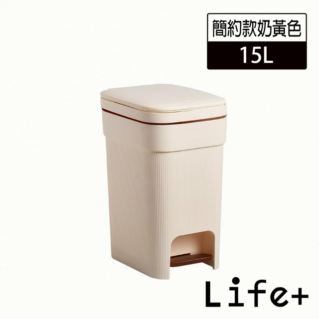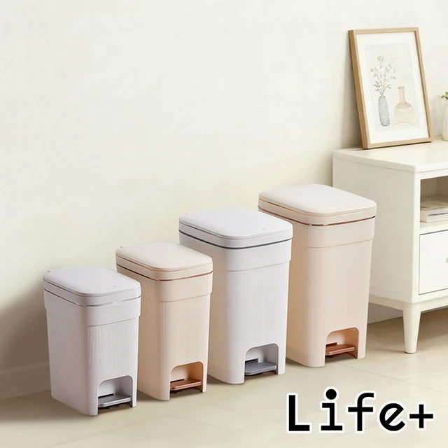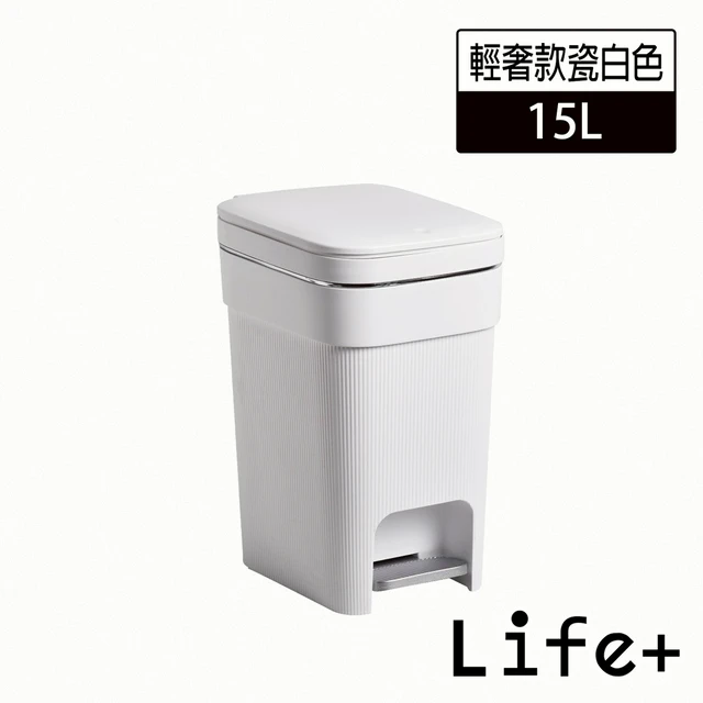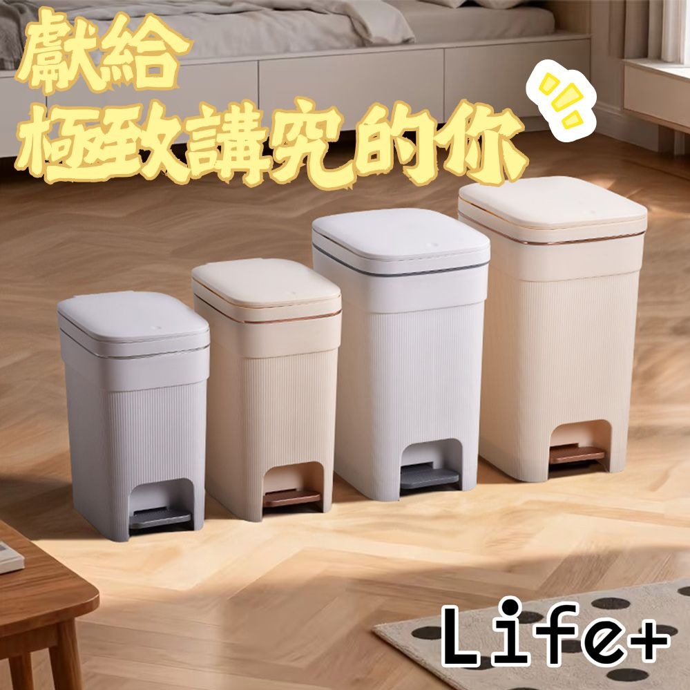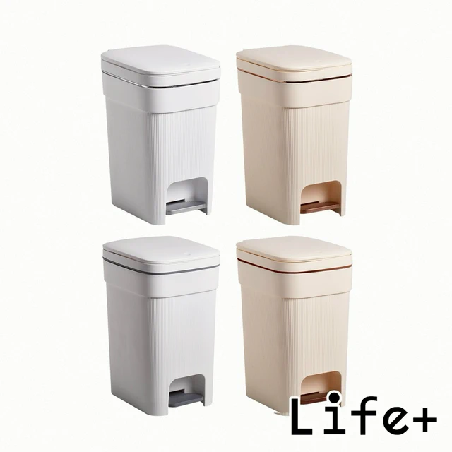 【Life+】日系簡約拼色加厚靜音緩降雙開式垃圾桶_1入