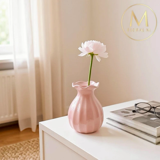 快速出貨🌷家居擺飾【Floral M】Ins風櫻花粉陶瓷迷你小花瓶