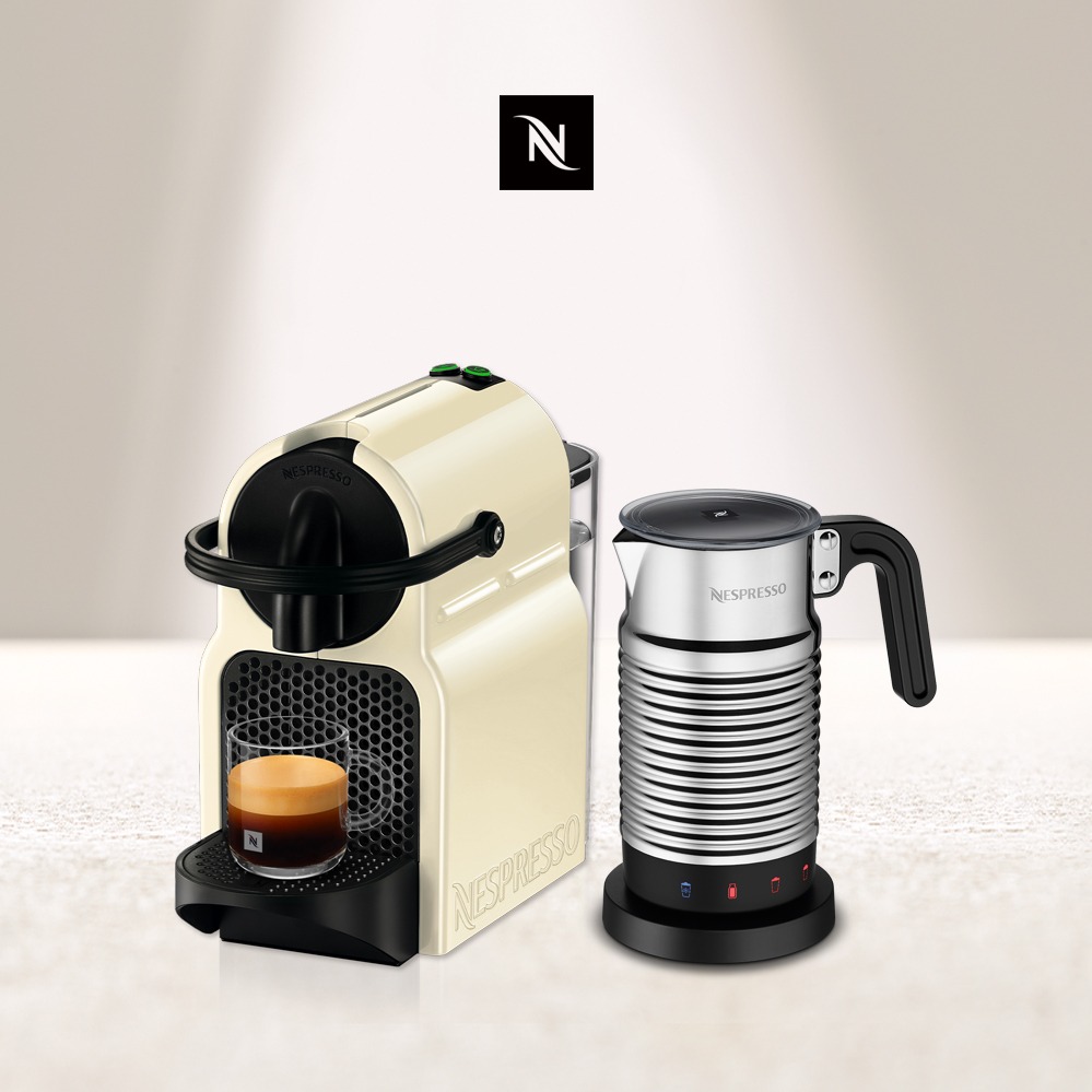 【Nespresso】膠囊咖啡機 Inissia 香草黃 白色奶泡機組合 (贈咖啡組+膠囊折扣金)