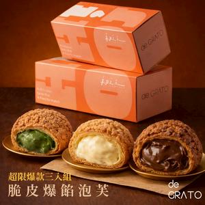 【快速出貨】+79元多一件🍓【瀾島de GRATO】脆皮爆餡冰心泡芙三入 香草/醇濃抹茶/法芙娜巧克力