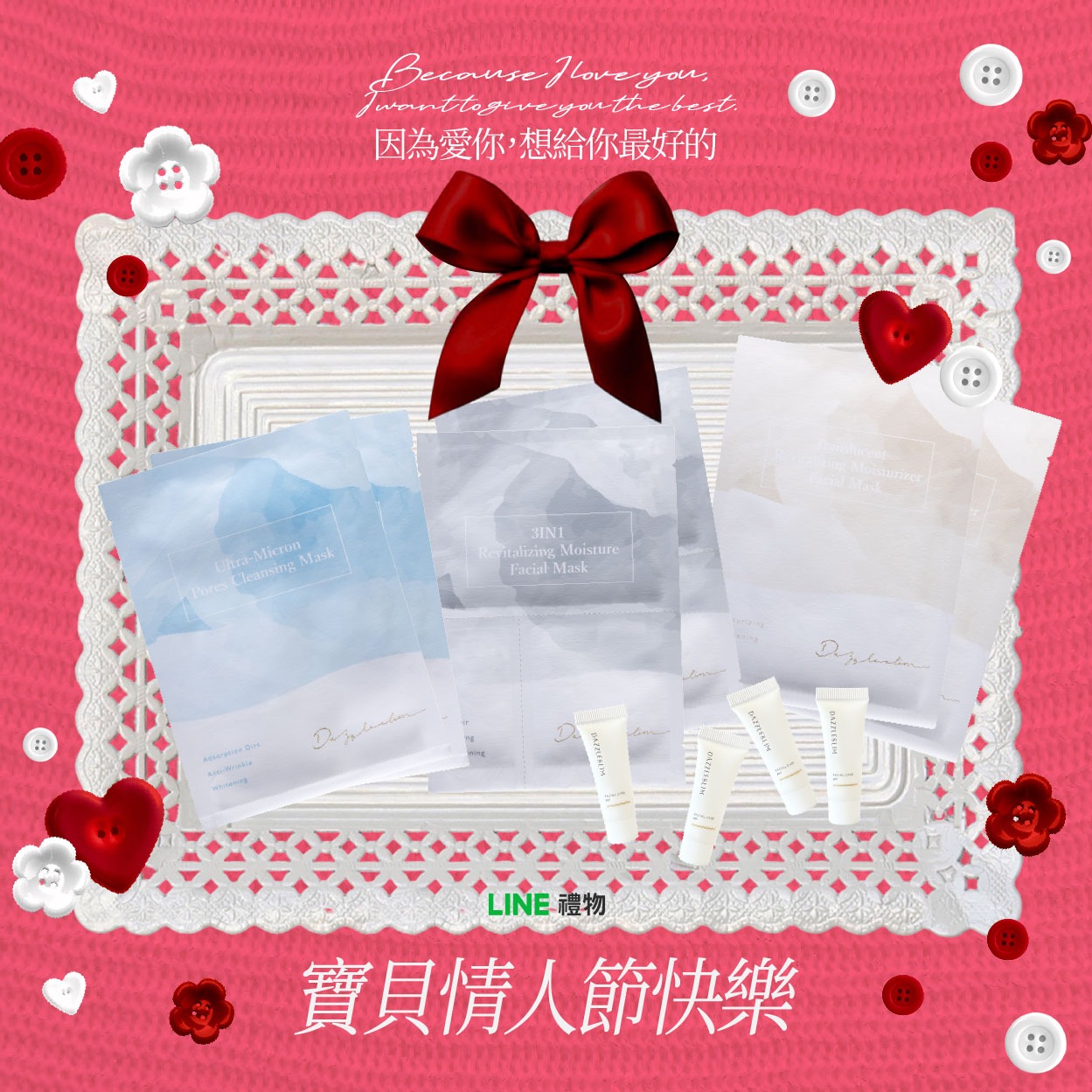 情人節快樂!有你真好|養肌135-清潔面膜+清水膜+追水膜贈 品牌毛巾
