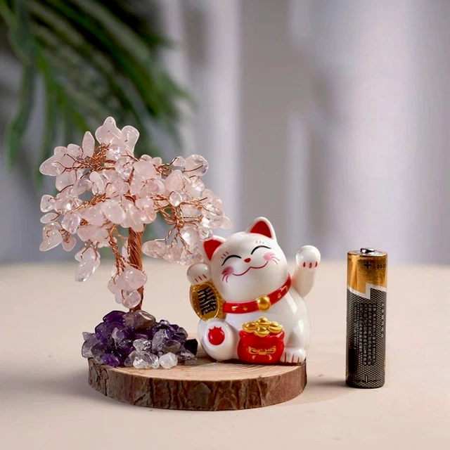 🐎新年快樂🔜 快速出貨【招財貓的家】5寸天然水晶發財樹金磚樹招財貓2件組 生日禮物 開業禮物 開運 招財 喬遷禮物 交換禮物