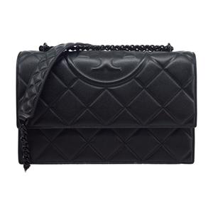 [平輸版] 【TORY BURCH】Fleming 菱格紋鏈帶斜背包(大/全黑)真品平輸