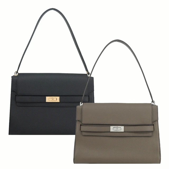 [平輸版] 【TORY BURCH】LEE RADZIWILL 撞色荔枝紋手提/斜背兩用包(小/橡木灰)真品平輸