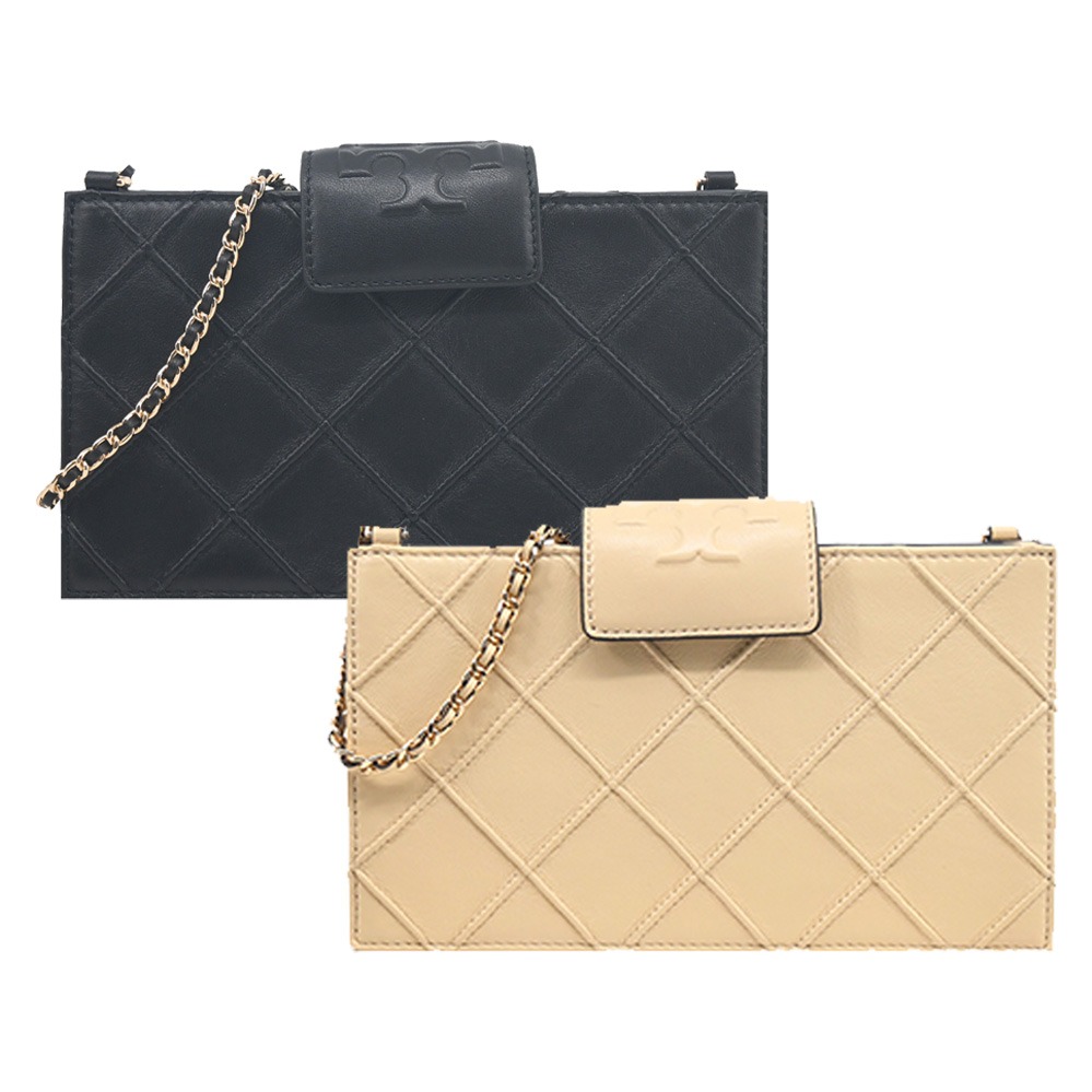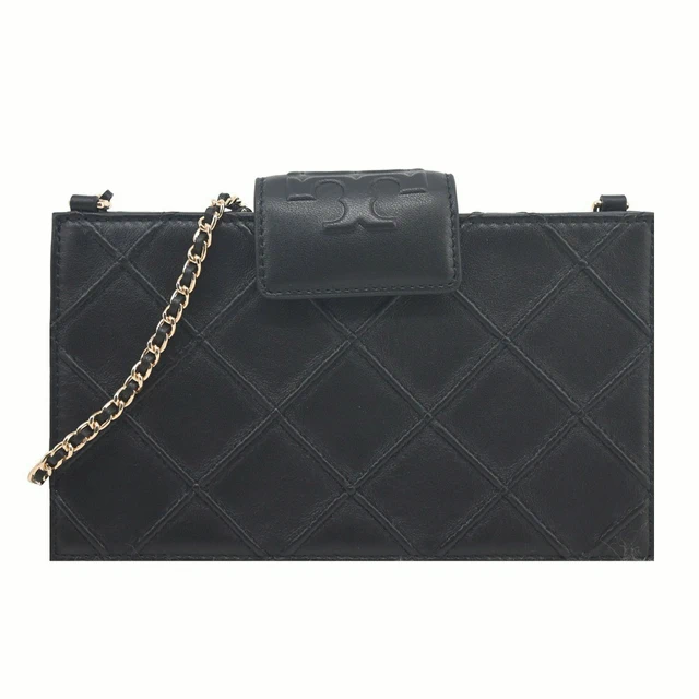 [平輸版] 【TORY BURCH】Fleming 菱格紋鏈帶斜背包(大/全黑)真品平輸