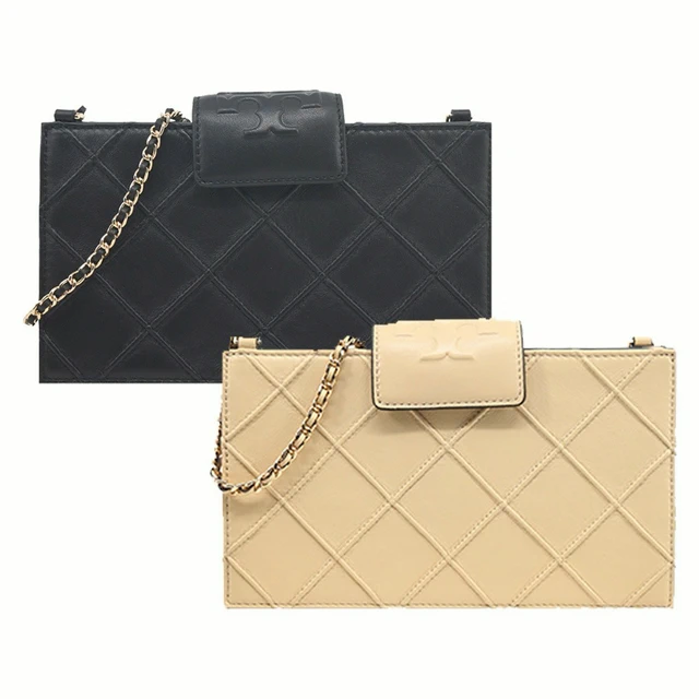[平輸版] 【TORY BURCH】Fleming 菱格紋鏈帶斜背包(大/黑色)真品平輸
