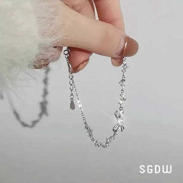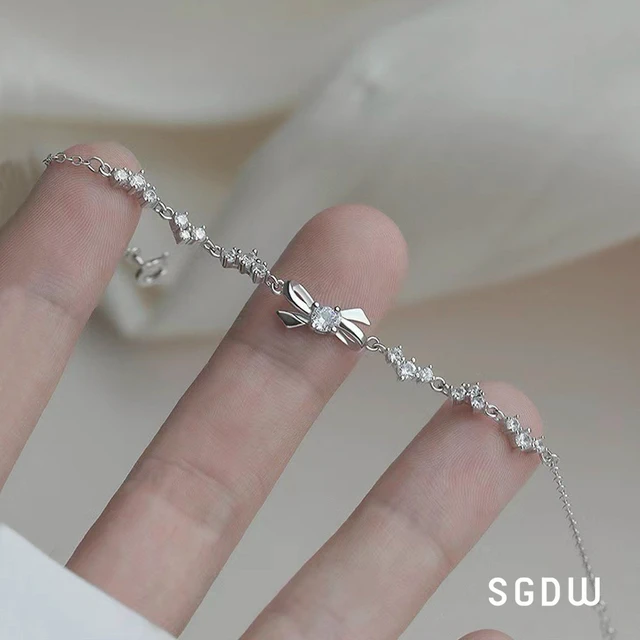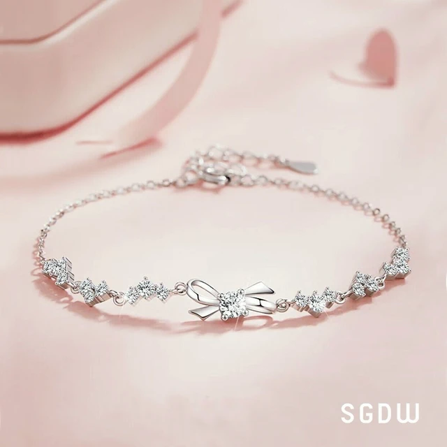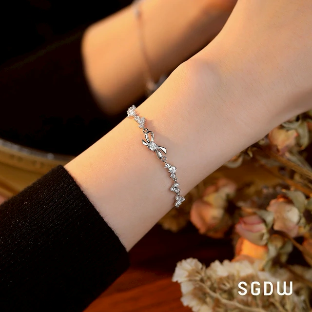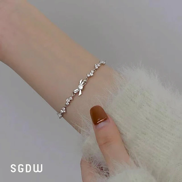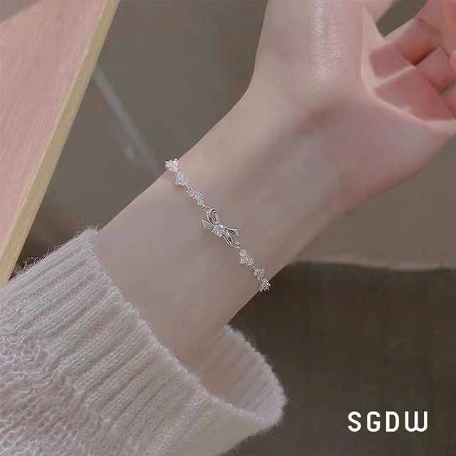 【SWAROVSKI 施華洛世奇】Lifelong 蝴蝶結手鏈 密鑲 白色 鍍白金色 | 生日禮物 | 畢業禮物 | 情人節禮物