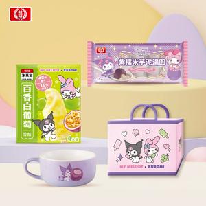 LINE禮物獨家組合【桂冠】甜酷相遇春暖好運湯圓禮 Kuromi+Melody 超人氣三麗鷗明星聯名(紫糯米芋泥湯圓+百香白葡萄雪酪+聯名湯杯+保冷袋)