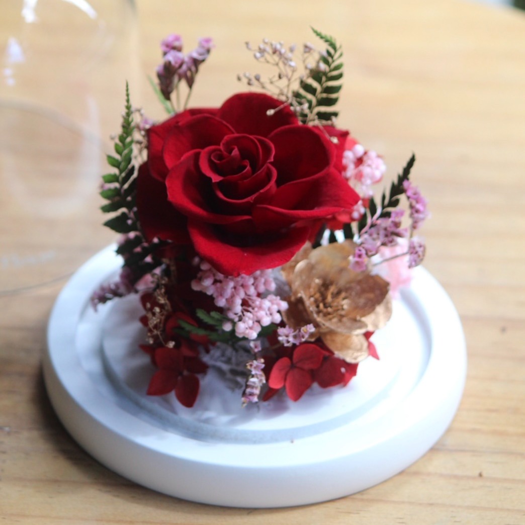 【Bloom & Grace 永生花禮花藝店】精緻深粉玫瑰小玻璃花盅 永生花 送禮 節日送禮 禮物 《全台寄送》
