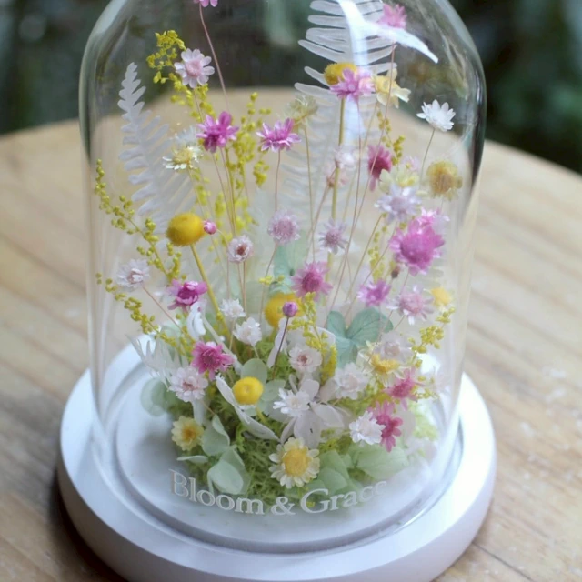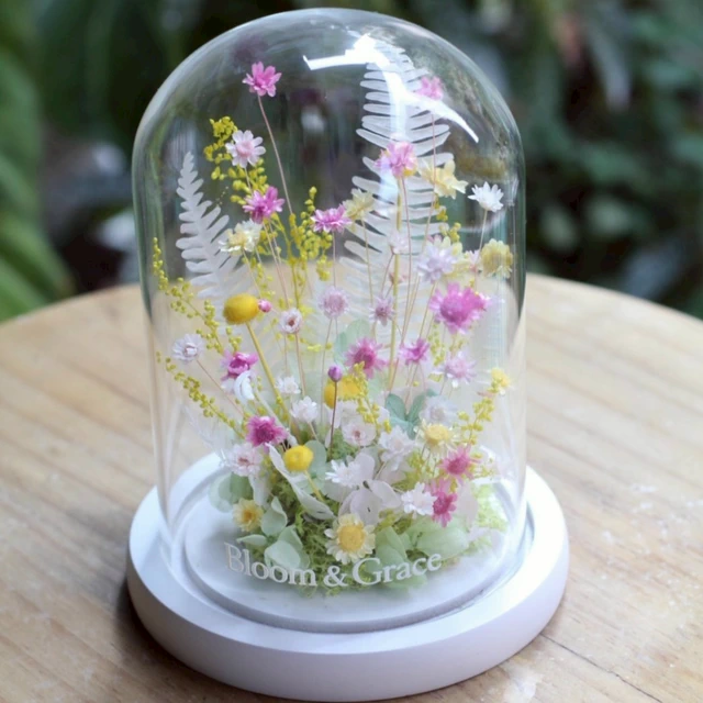 【Bloom & Grace 永生花禮花藝店】純淨蒲公英永生花玻璃花盅(木頭底) 永生花 送禮 節日送禮 禮物 《全台寄送》