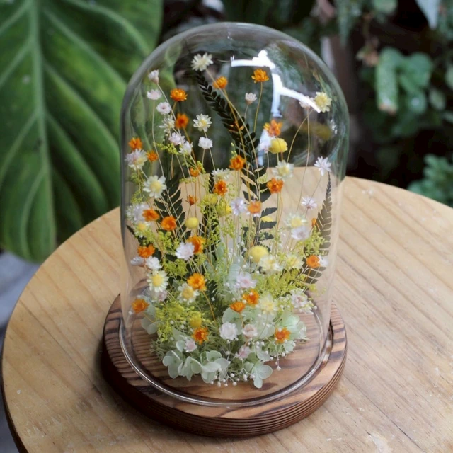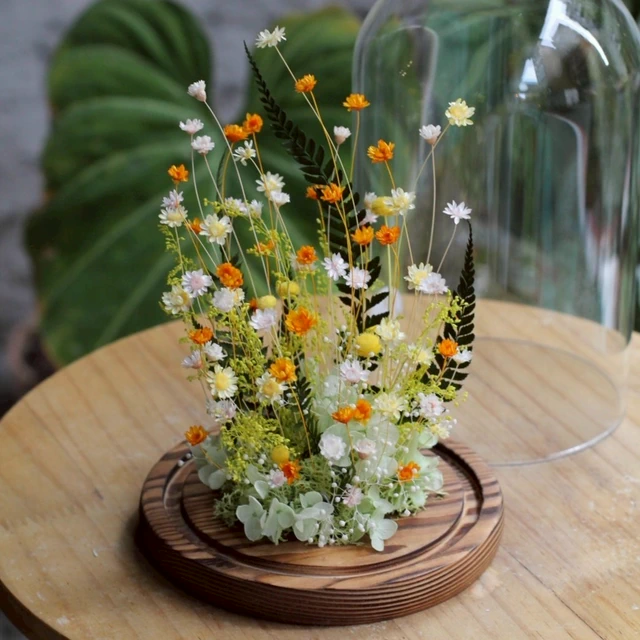 【Bloom & Grace 永生花禮花藝店】純淨蒲公英永生花玻璃花盅(木頭底) 永生花 送禮 節日送禮 禮物 《全台寄送》