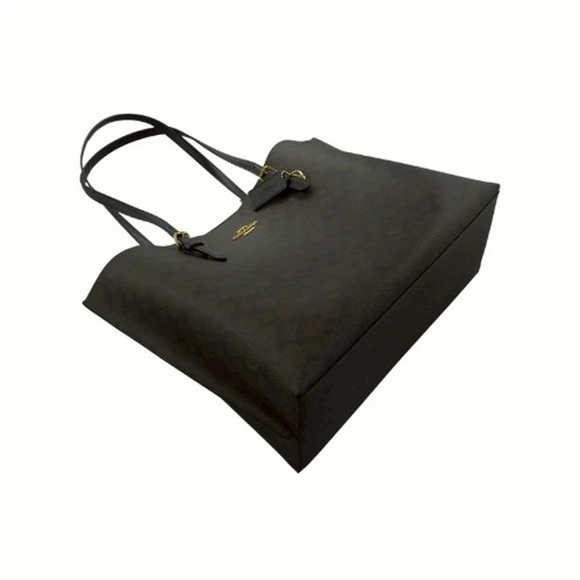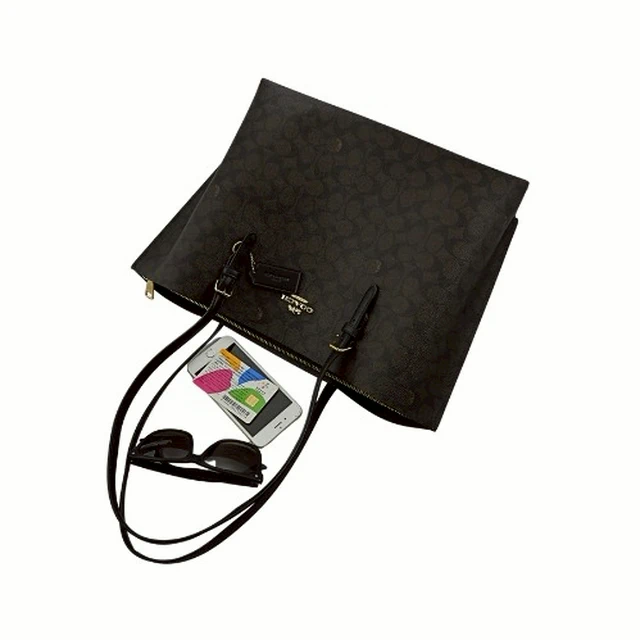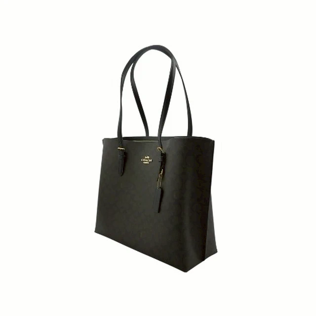 [平輸版] 【COACH】 MOLLIE 胡桃木/黑C LOGO PVC雙層大款肩背托特包 真品平輸