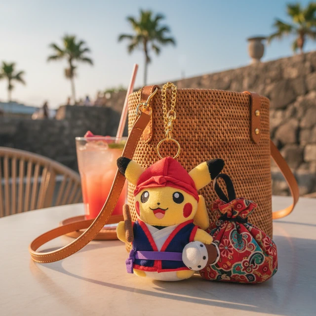 【Pokémon寶可夢】琉球舞/太鼓舞皮卡丘吊飾娃娃-12CM 正版日本沖繩限定款 神奇寶貝絨毛娃娃公仔 包包掛飾配件 鑰匙圈裝飾 女生朋友送禮 百元情人節交換禮物