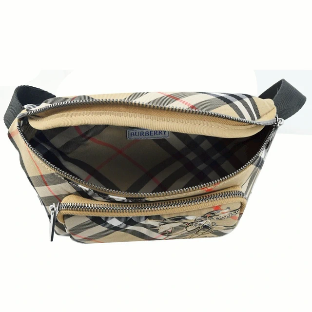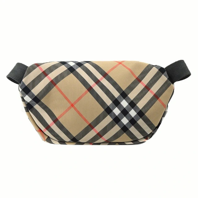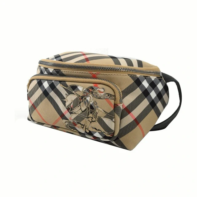 [平輸版] BURBERRY Horseferry小牛皮格紋帆布飾邊斜背包(紅棕)真品平輸