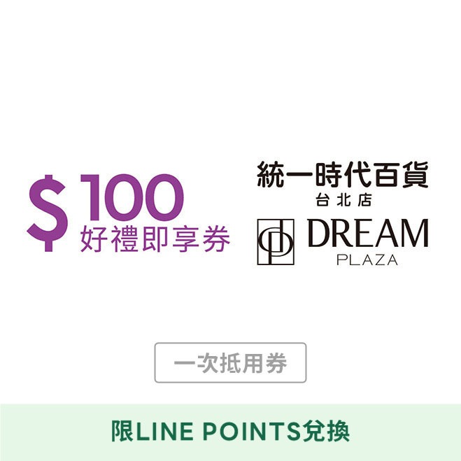 [LINE POINTS 1點大於1元活動]【統一時代百貨台北店 | Dream plaza】300元好禮即享券