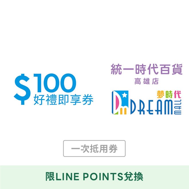 [LINE POINTS 1點大於1元活動]【統一時代百貨台北店 | Dream plaza】100元好禮即享券