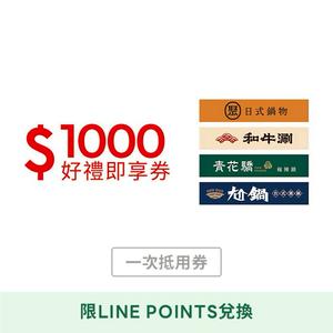 [LINE POINTS 1點大於1元活動]【王品集團】聚、青花驕、和牛涮、尬鍋 1000元王品火鍋聯合好禮即享券(一次抵用型)