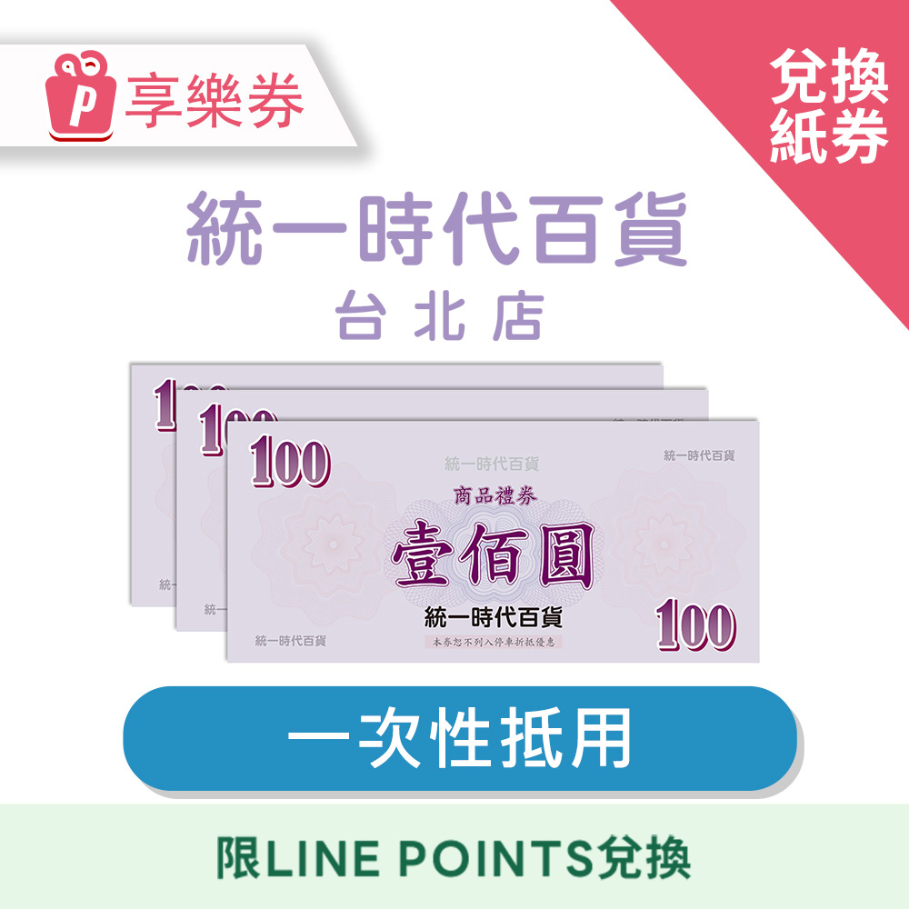 【LINE POINTS兌換】統一時代百貨台北店100元 享樂券(電子憑證5F兌換紙券)