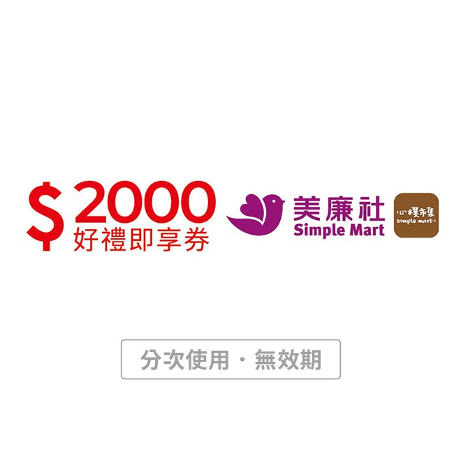 【美廉社+Tomod's通用】2000元好禮即享券(分次使用.無效期)