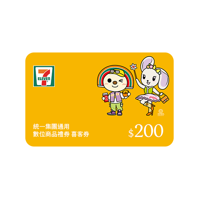 【統一集團通用】 300元 7-ELEVEN數位商品禮券 喜客券(輸入序號後.可分次使用)