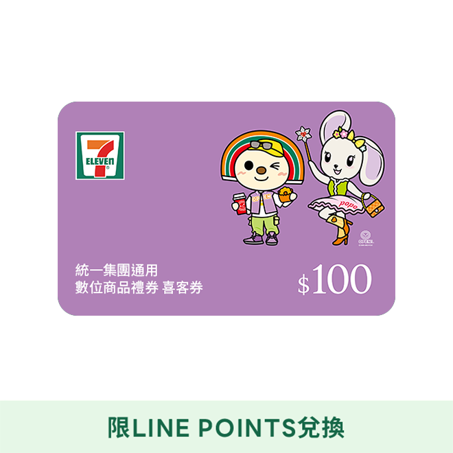 [LINE POINTS 1點大於1元活動]【統一集團通用】 100元 7-ELEVEN數位商品禮券 喜客券(輸入序號後.可分次使用)