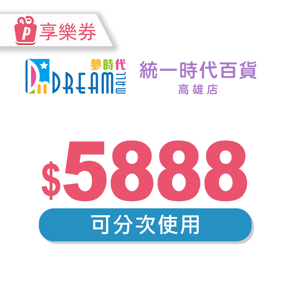 【高雄夢時代/統一時代百貨高雄店】電子禮券888元 享樂券(輸入序號後.可分次使用)