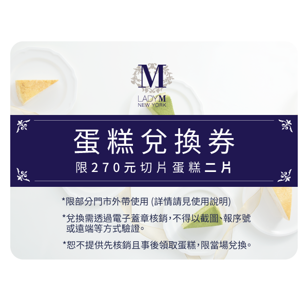 【Lady M】270元切片蛋糕二片兌換券(僅限部分門市外帶)