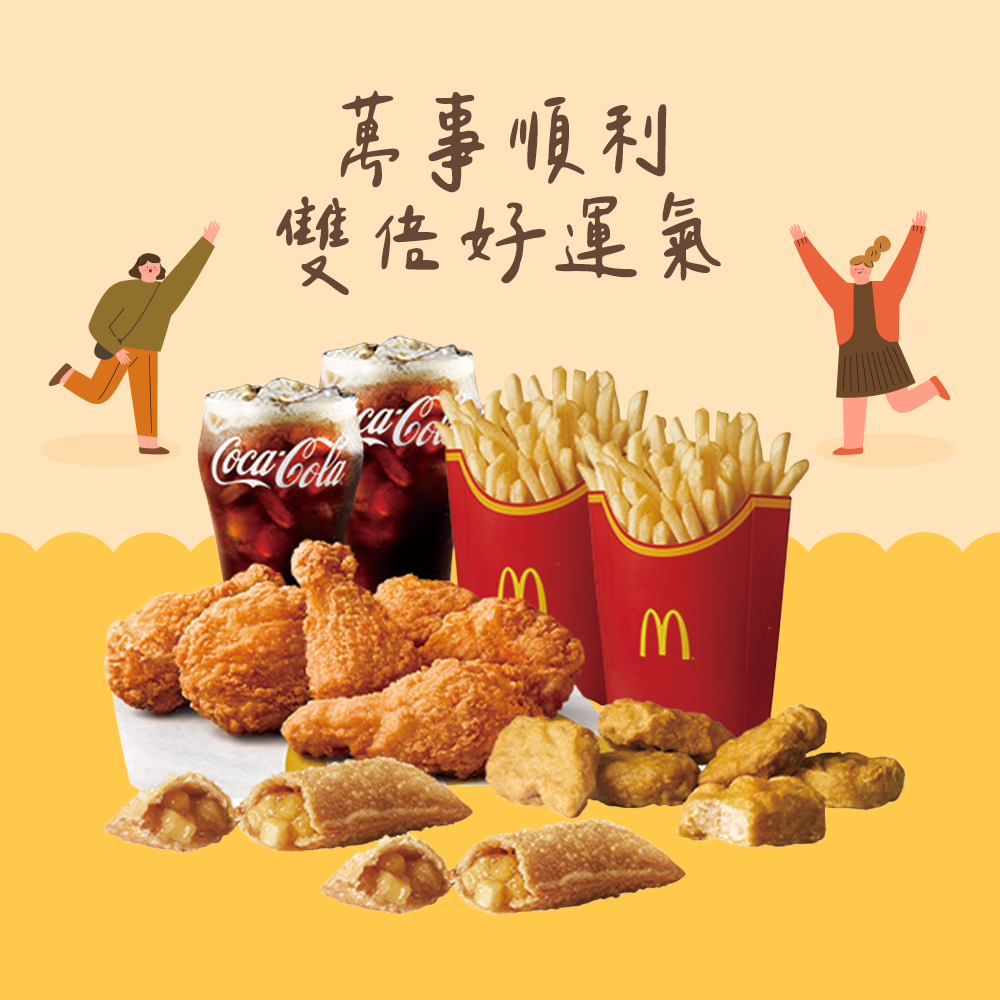 [麥當勞·2月限定麥心意]【麥當勞】大麥克+勁辣鷄腿堡+麥克鷄塊(6塊)+薯條(中)x2+可樂(中)x2好禮即享券