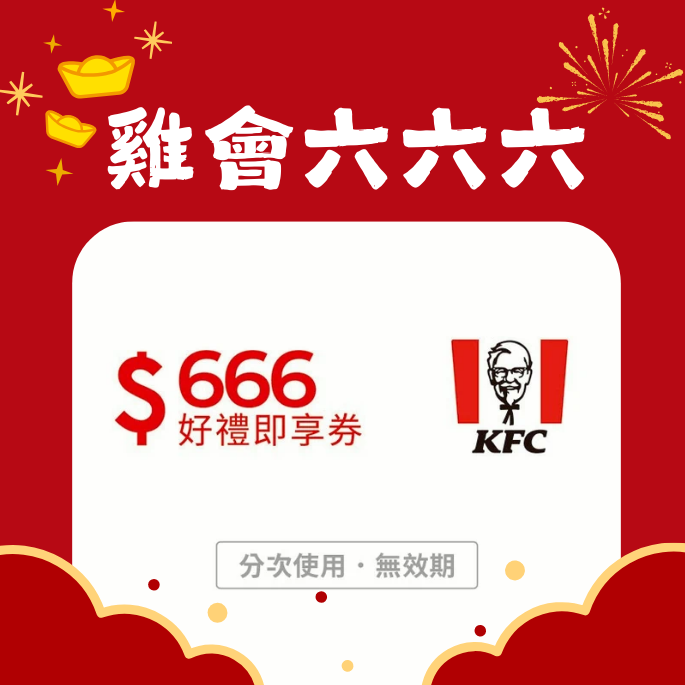 [美食必揪禮]【肯德基】1000元好禮即享券(分次使用.無效期)