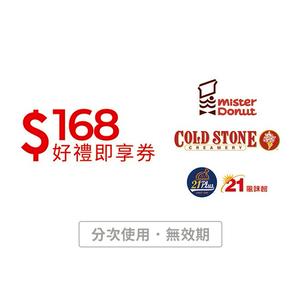 【酷聖石/多拿滋/21Plus 通用】168元好禮即享券(輸入序號後.可分次使用)