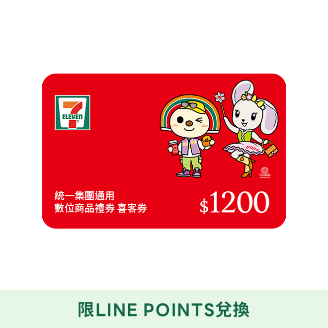 [LINE POINTS兌換]【統一集團通用】 1200元 7-ELEVEN數位商品禮券 喜客券(輸入序號後.可分次使用)