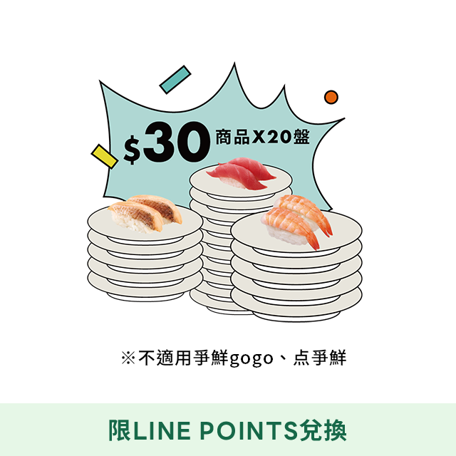 【LINE POINTS兌換】 爭鮮迴轉壽司 30元壽司5盤 喜客券