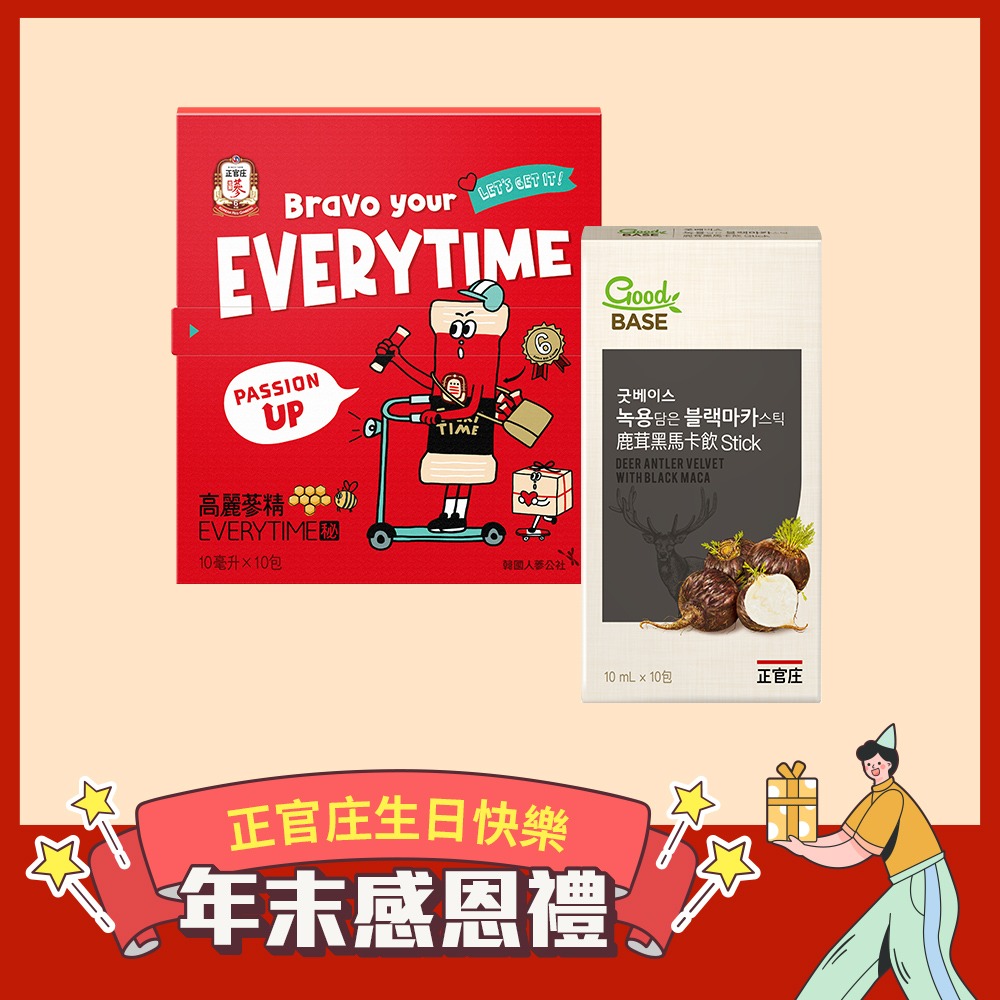 蜜助蔘補 不苦澀【正官庄】高麗蔘精EVERYTIME秘(20入)(效期2026/8)-提把 送BRAVO人物收納布袋