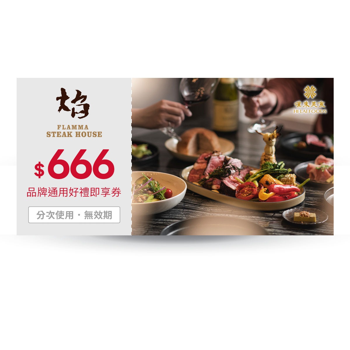 【焰鐵板燒】666元品牌通用好禮即享券(分次使用.無效期)
