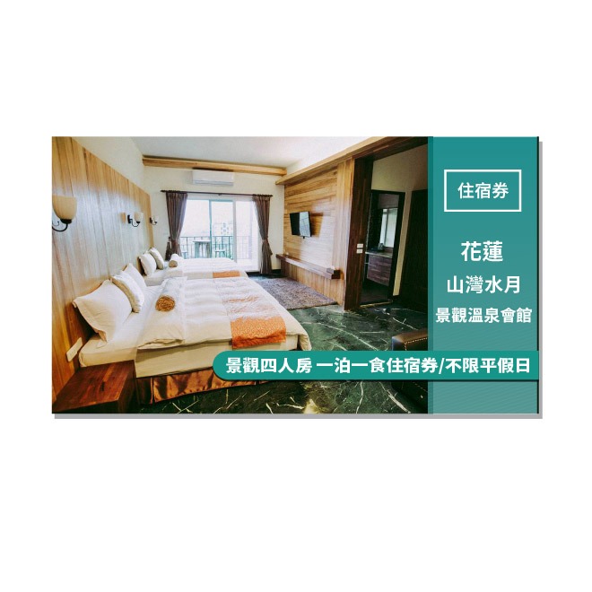 花蓮【山灣水月景觀溫泉會館】景觀四人房一泊一食住宿券(MO)